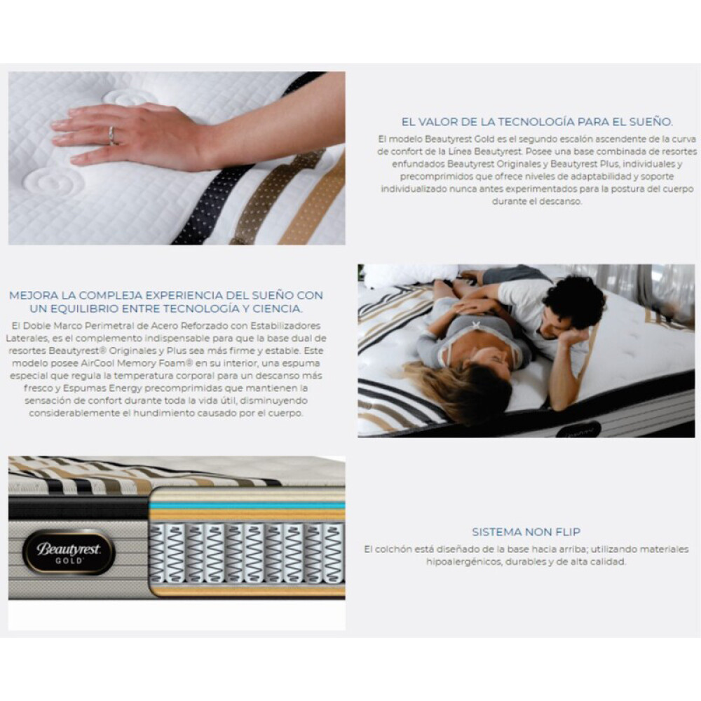 30 El colchón Gold se compone de una base combinada de resortes enfundados Beautyrest Originales y Beautyrest Plus que ofrece niveles de adaptabilidad y soporte individualizado nunca antes experimentados.