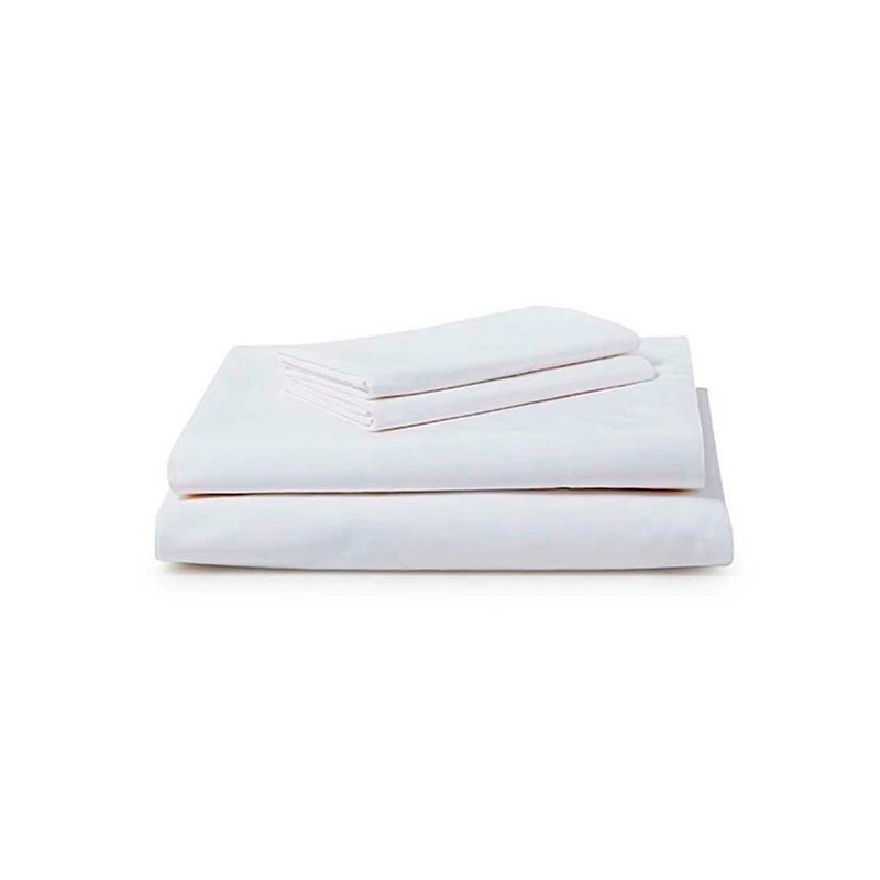 Juego de Sábanas 2 Plazas Full Blanca Lisa 400 Hilos Medidas: 140x200x40 cms. La parte inferior es elastizada. Incluye 2 Fundas de Almohada de 50x70 cms. 100% Algodón 400 Hilos