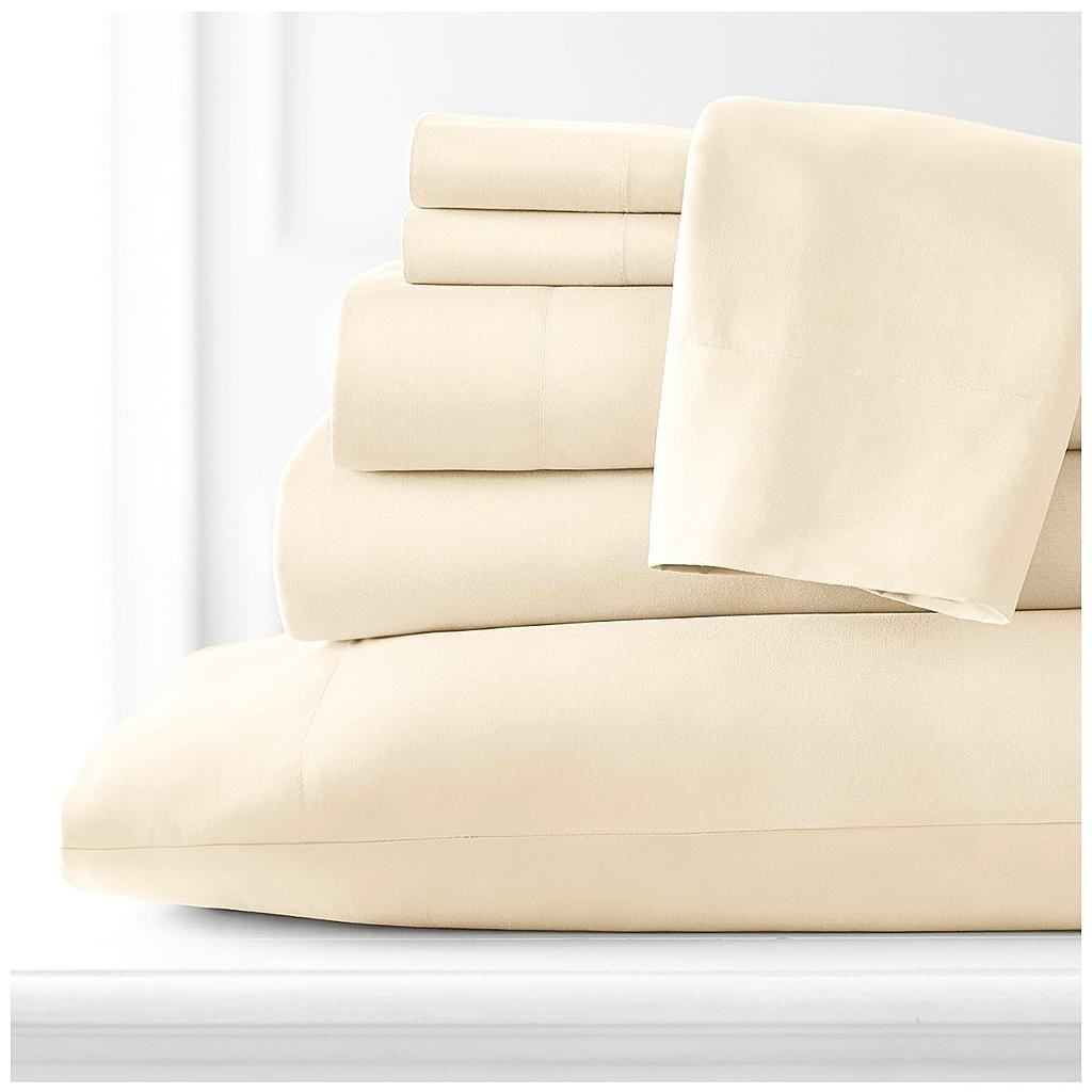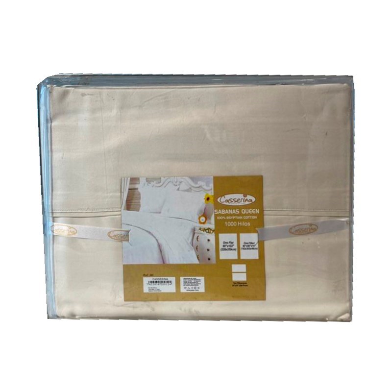 Juego de Sábanas 2 Plazas Crema Mi Queen Sábana Superior: 228x259 cms. Sábana Inferior: 152x203x40 cms. Incluye 2 Fundas de Almohada de 50x70 cms. Algodón Egipcio 1000 Hilos