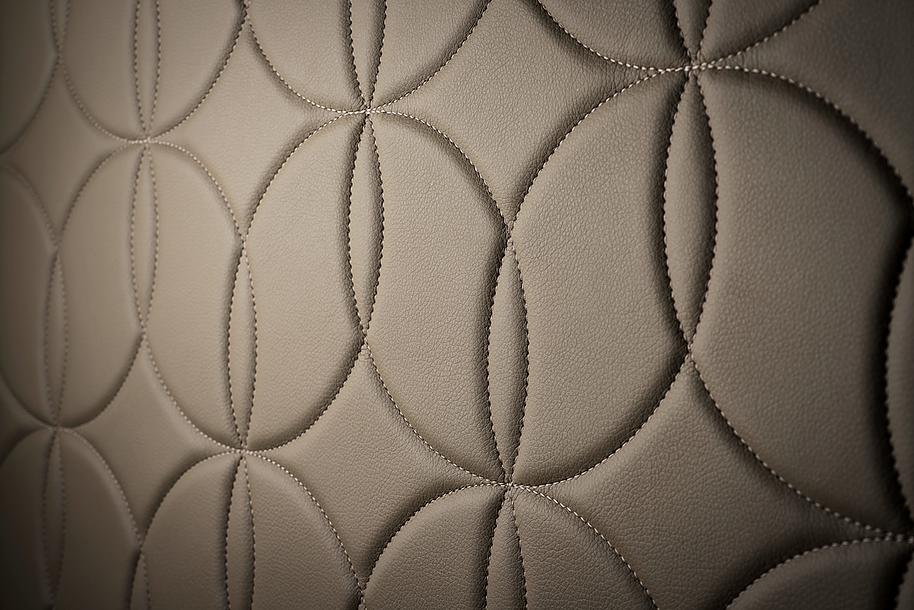 Con costuras circulares que se entrelazan formando flores, este diseño de costura tiene como objetivo crear un diseño complejo e inteligente.